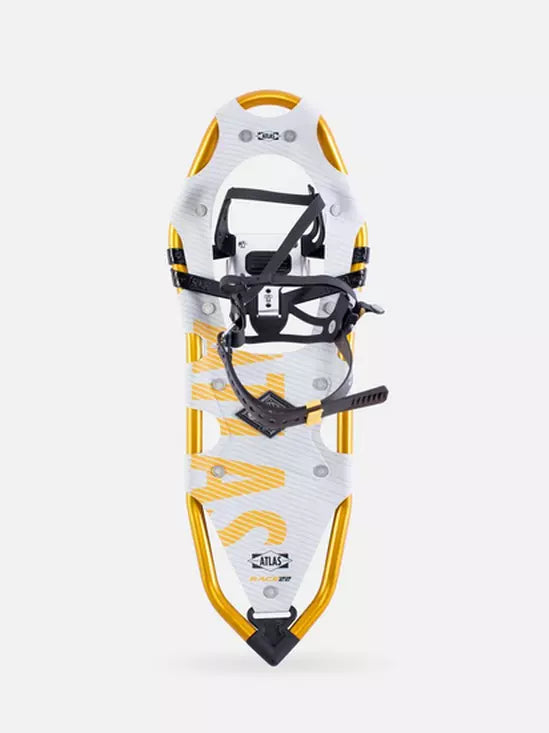 This one-of-a-kind ultralight snowshoe is the top model in our Speed category and is intended for light & fast winter travel and snowshoe running. This design truly speaks to Atlas’s innovation and engineering prowess, as our team has painstakingly designed the Race to fit the needs of endurance athletes around the world. It all starts with the insanely light, yet durable 7075 aluminum used to craft the Speed V-Frame. This frame, combined with the Nytex decking creates the platform to deliver speed, stability and flotation. The Adjustable Spring-LoadedTM Suspension suspends the snowshoe close underfoot so it can move freely with its intended articulation. It’s also adjustable to three different settings so you can fine tune your desired responsiveness. This innovative technology allows for impact absorption, natural side-to-side flex and deeper crampon penetration for an uncompromised stride. The Z-Speed Race binding consists of a hydrophobic strap in a Z-configuration that holds your foot comfortably and securely. The binding is also removable to allow for direct mounting of your desired footwear for the ultimate in customizable snowshoe running technology. Two handy Direct Mount Guides are included with each pair to aid in this process. All in all, the Race truly speaks to Atlas’s creativity and engineering prowess and is sure to be loved by snowshoe runners everywhere.
