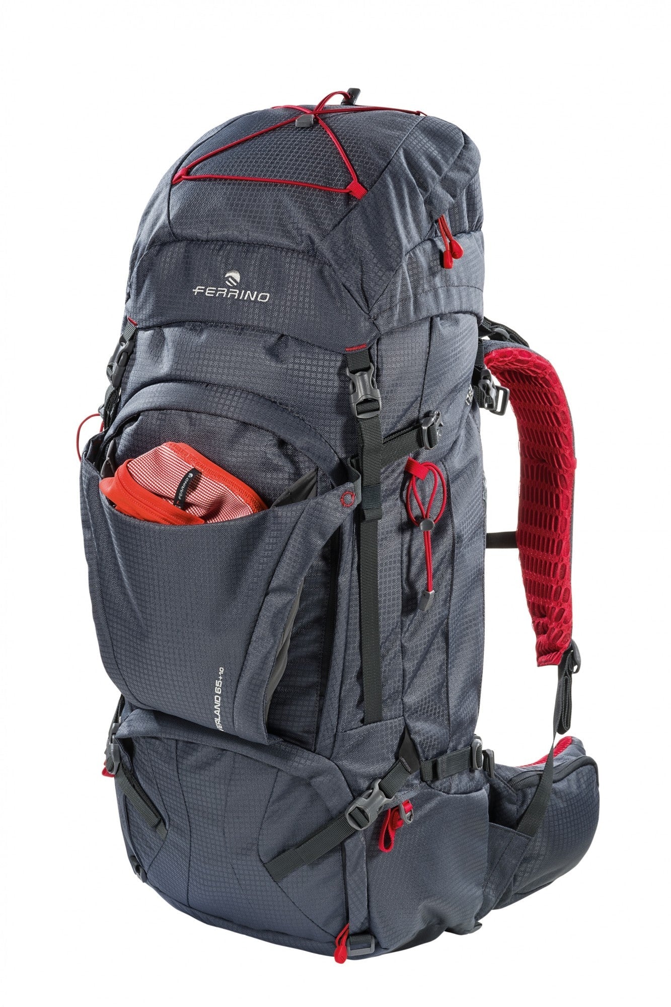 Overland 65+10 is the trekking backpack with adjustable back, linear design and lots of equipment. Double access in the front and bottom part of the backpack and removable top lid.