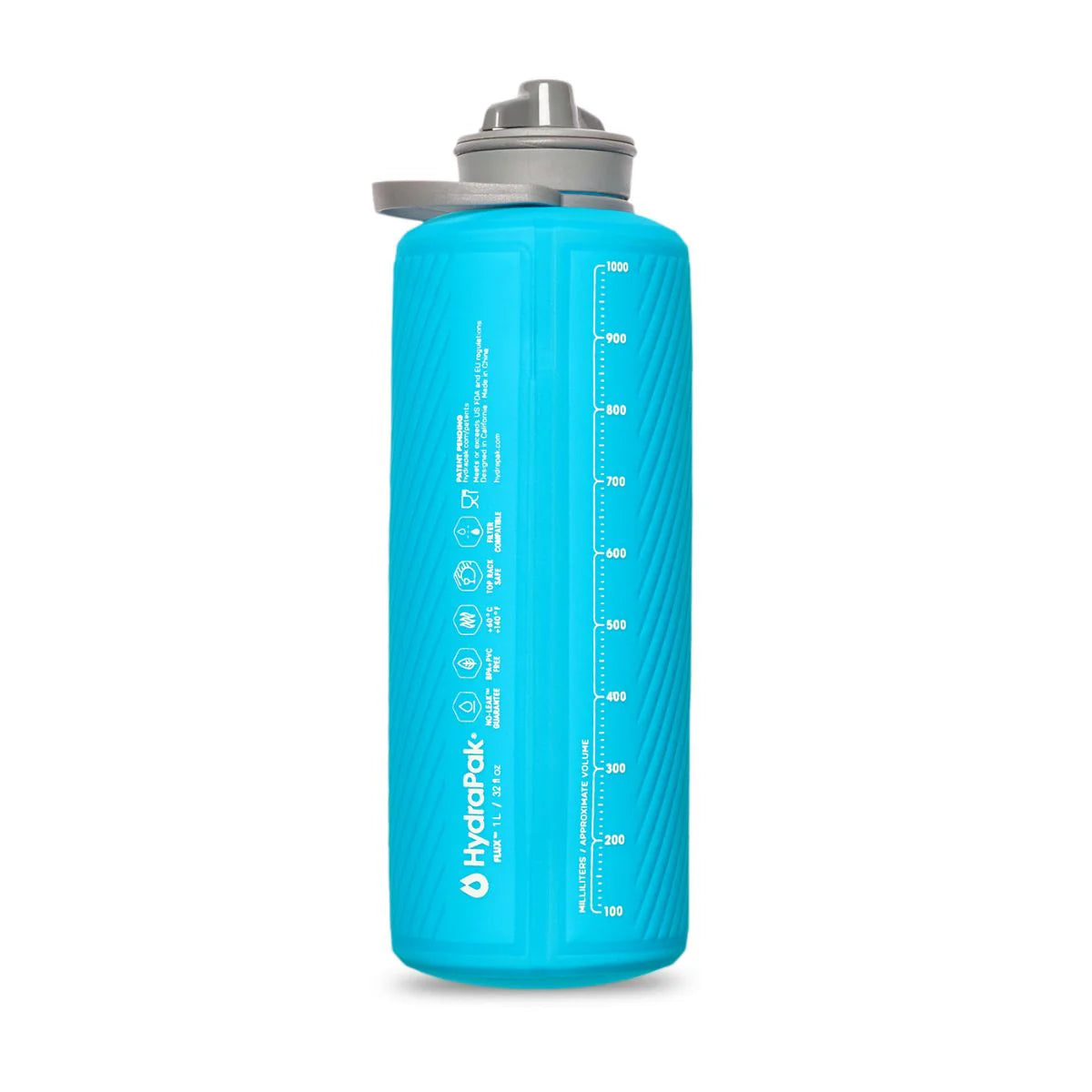 Flexible bottles get an upgrade. The Flux is shaped like a hard bottle, compresses like a softflask, and cuts weight by 50%. Topped with twist-drink nozzle for grab-and-go hydration, plus a bail handle to keep hydration secure in your hand or on your pack. The Flux stands upright like a hard bottle but when you finish your drink, this bottle packs down to pocket size.