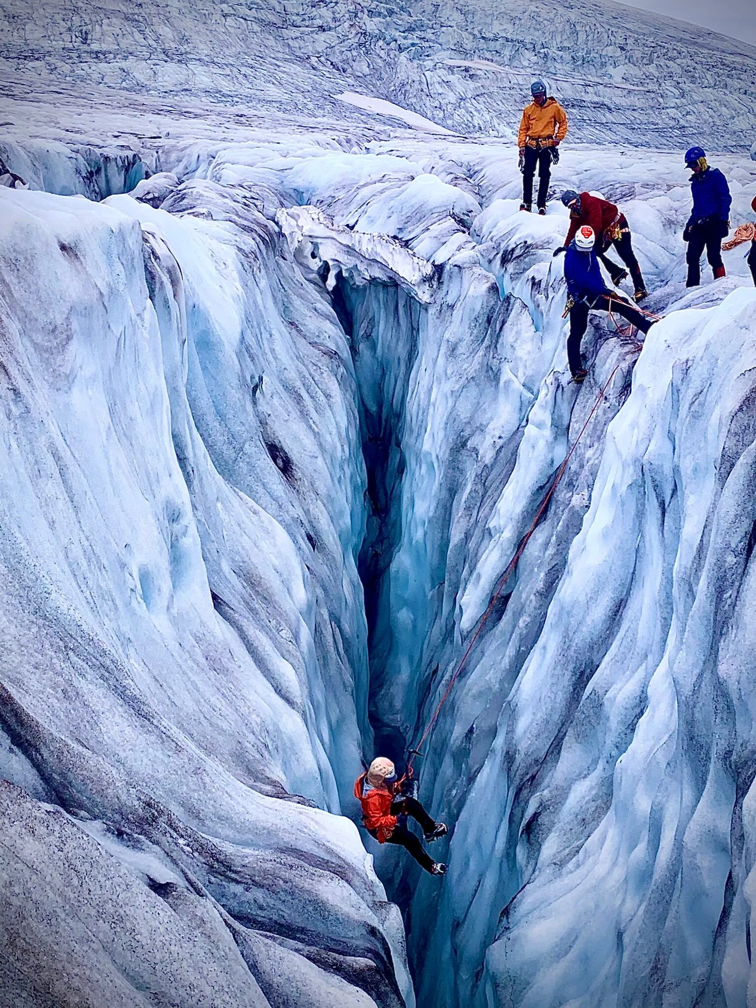 Instead, we maximize our instructional time and dedicate our three days to learning and practicing essential glacier travel skills.