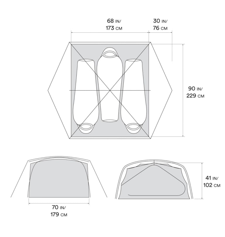 • Tent Floor Area: 42.5 sq ft / 3.9 sq m