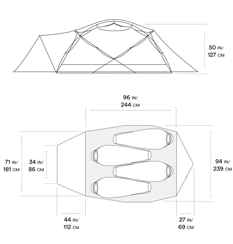 - Tent Floor Area: 57 sq ft / 5.3 sq m